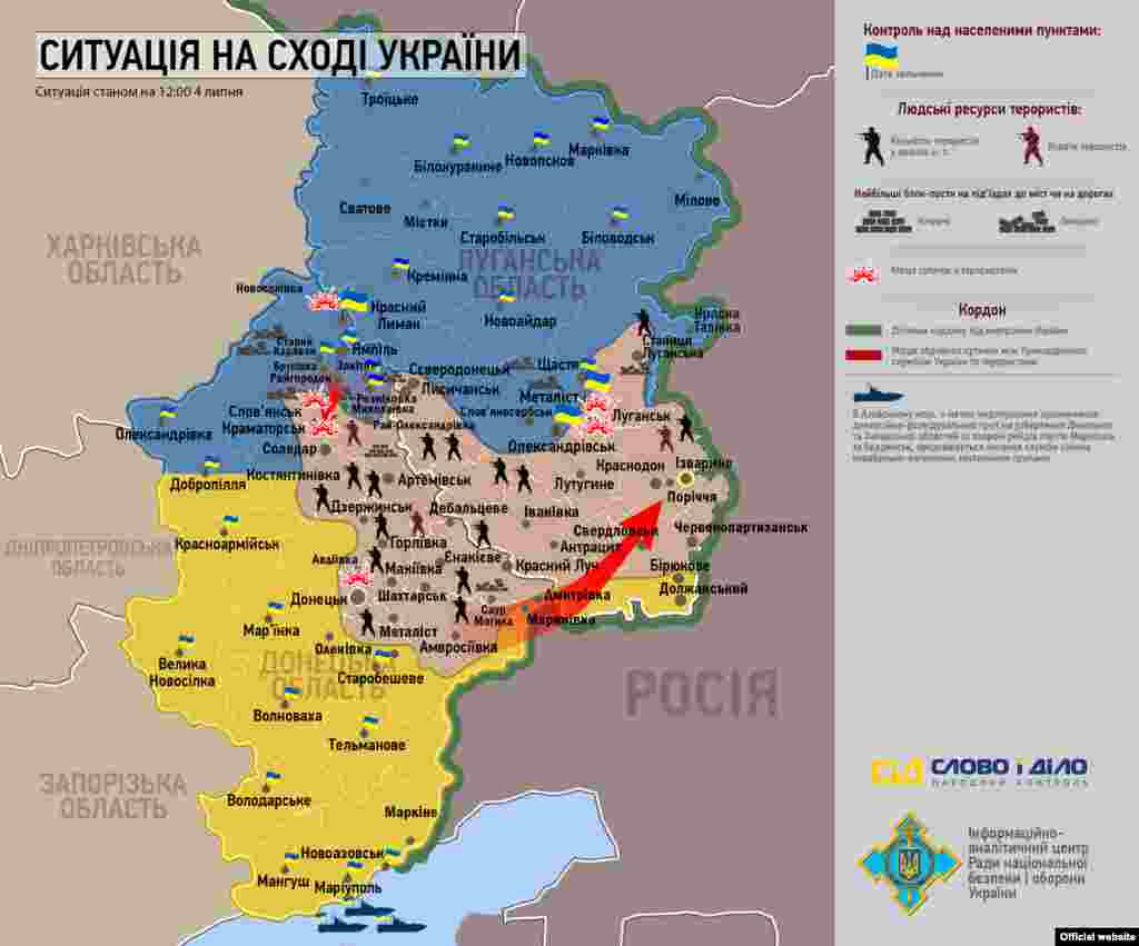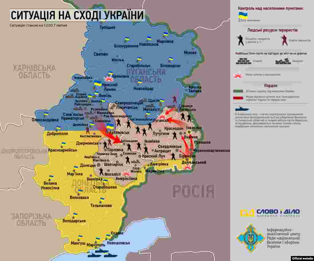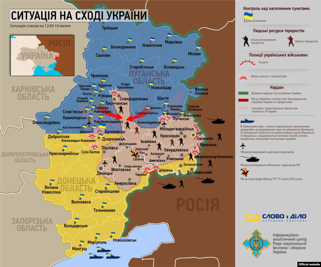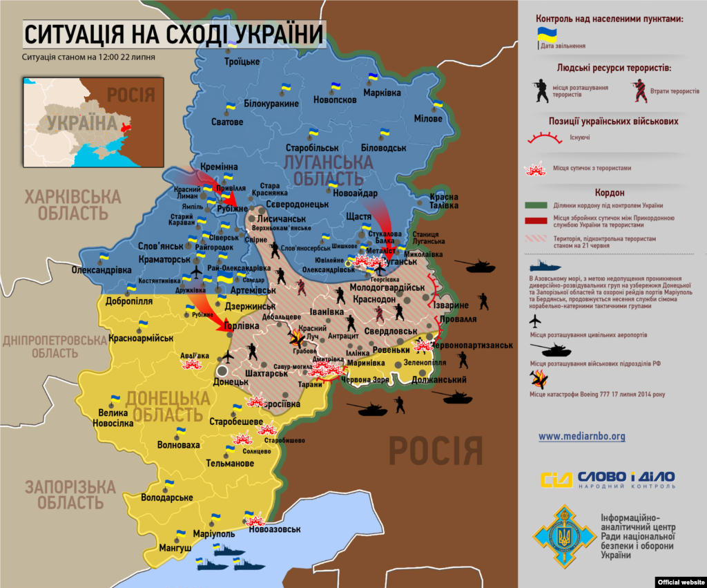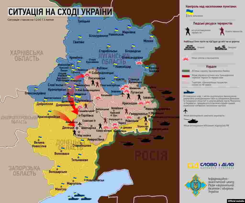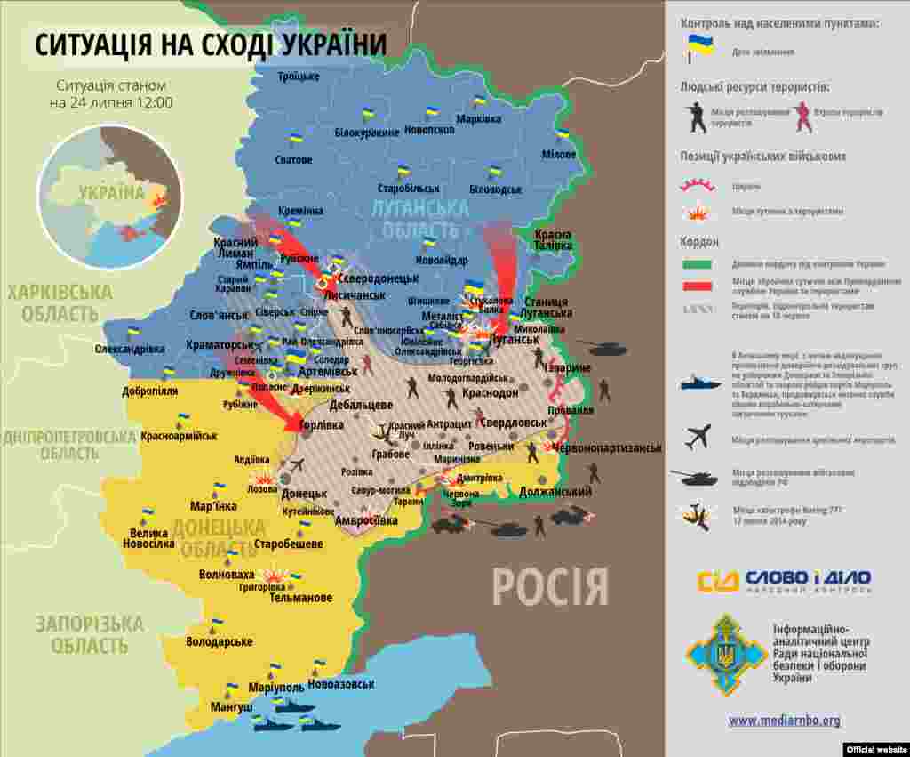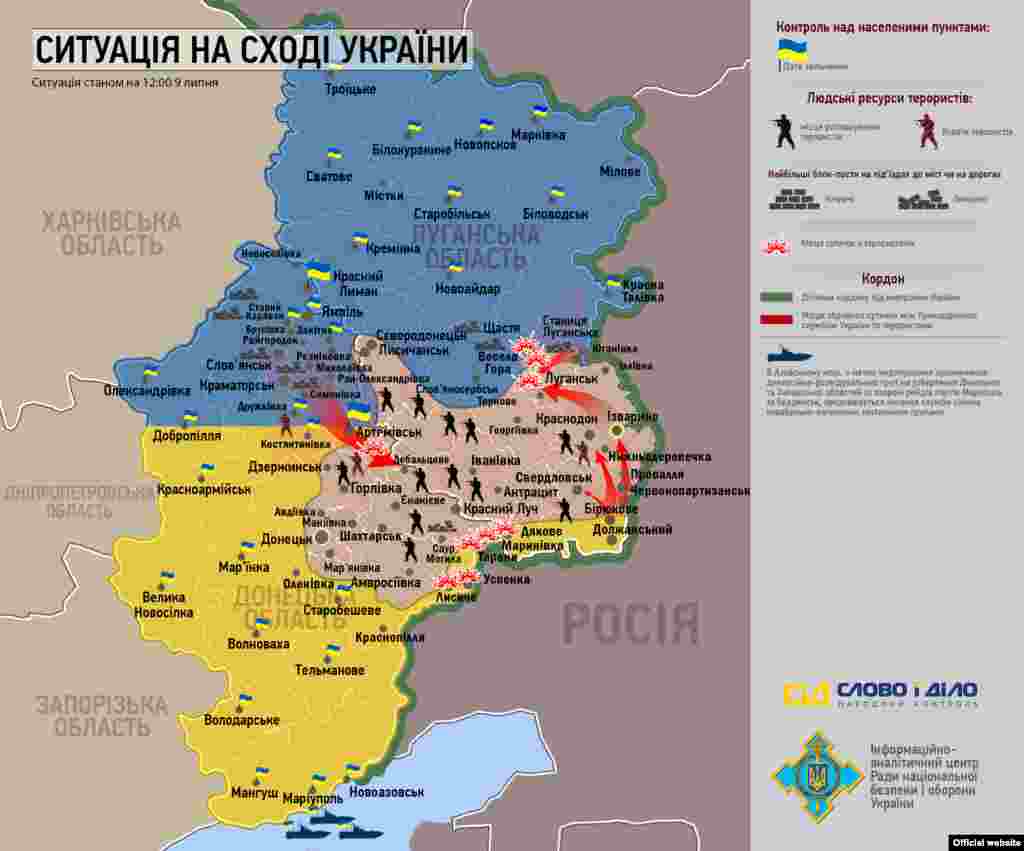 Розвиток ситуації у зоні АТО з 1 липня по 31 серпня 2014 року. Інфографіка Інформаційно-аналітичного центру Ради національної безпеки і оборони України