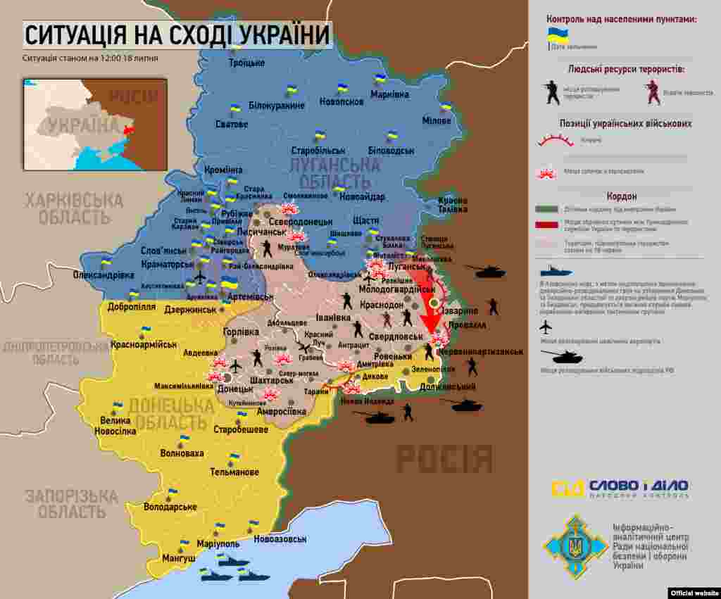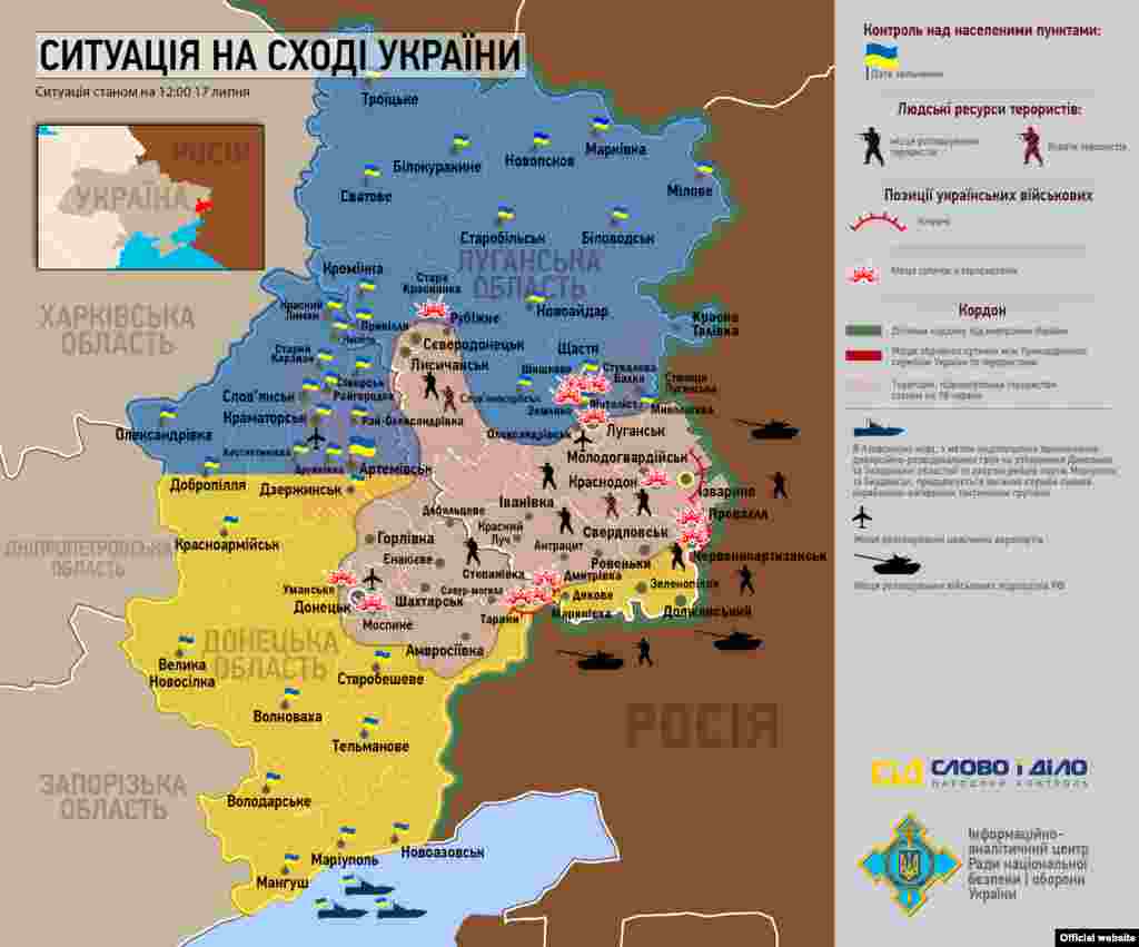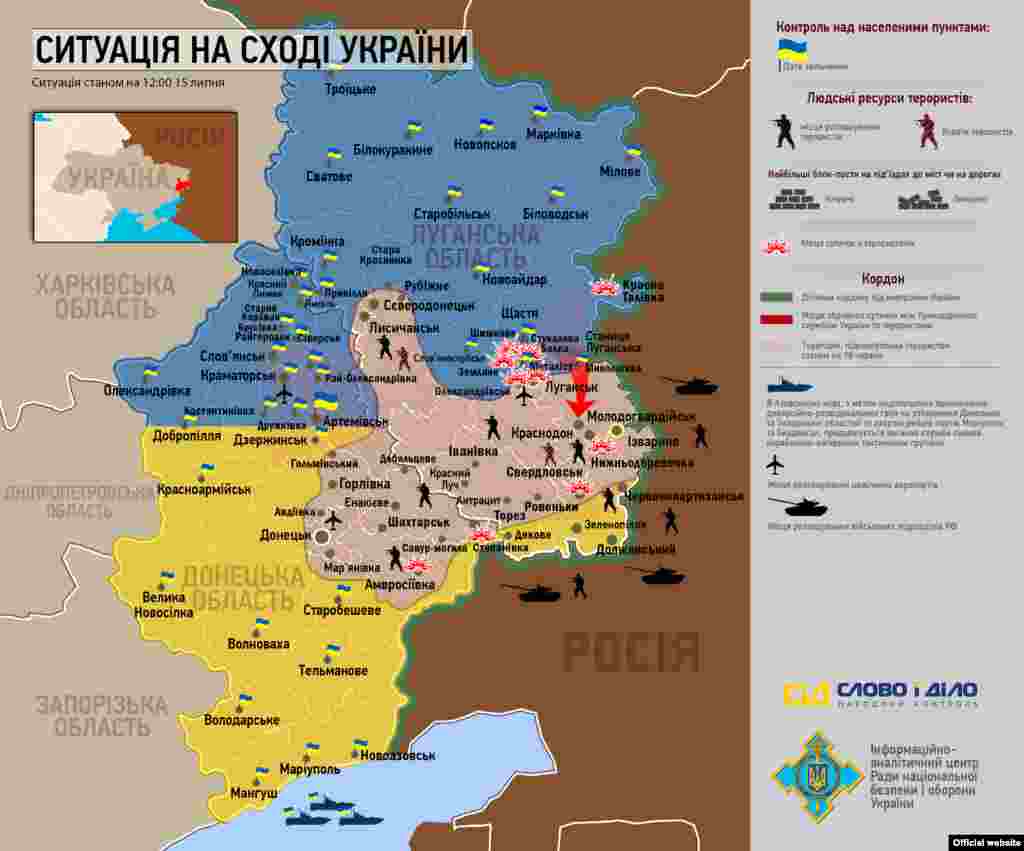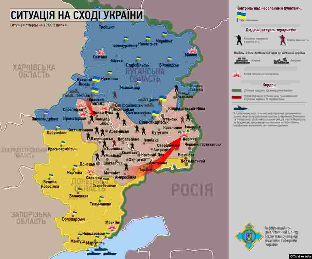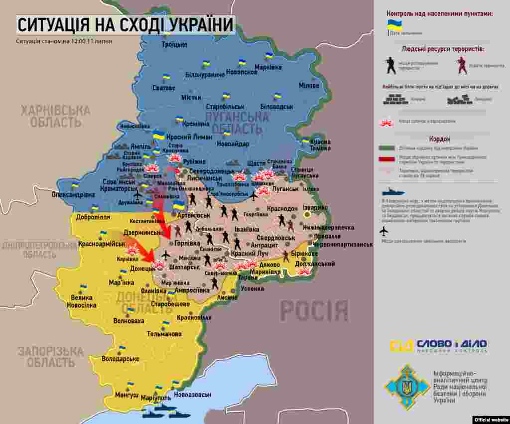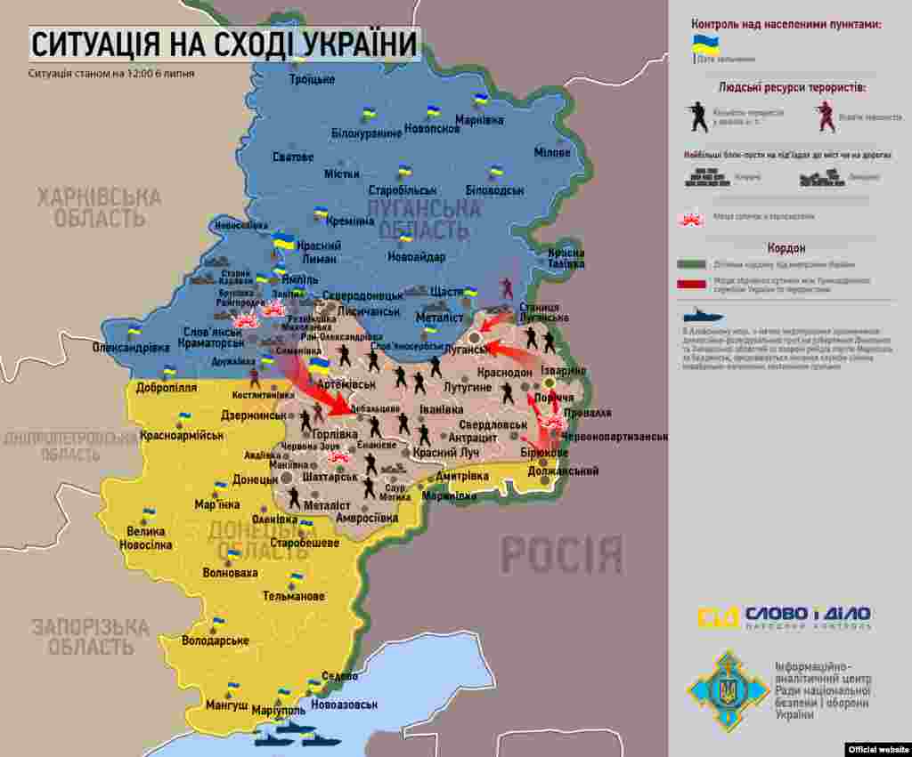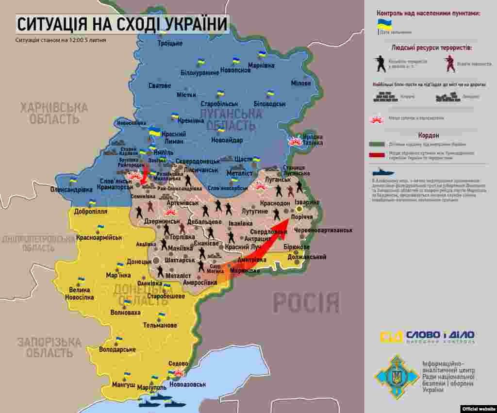 Розвиток ситуації у зоні АТО з 1 липня по 31 серпня 2014 року. Інфографіка Інформаційно-аналітичного центру Ради національної безпеки і оборони України