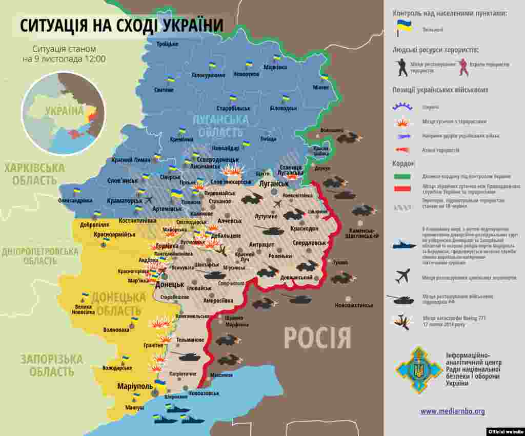Розвиток ситуації у зоні АТО з 1 вересня по 30 листопада. Інфографіка Інформаційно-аналітичного центру Ради національної безпеки і оборони України