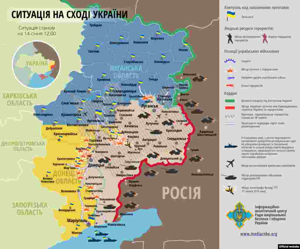 Розвиток ситуації у зоні АТО з 1 грудня 2014 року по 28 лютого 2015 року. Інфографіка Інформаційно-аналітичного центру Ради національної безпеки і оборони України