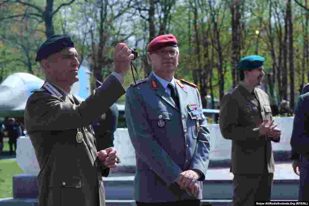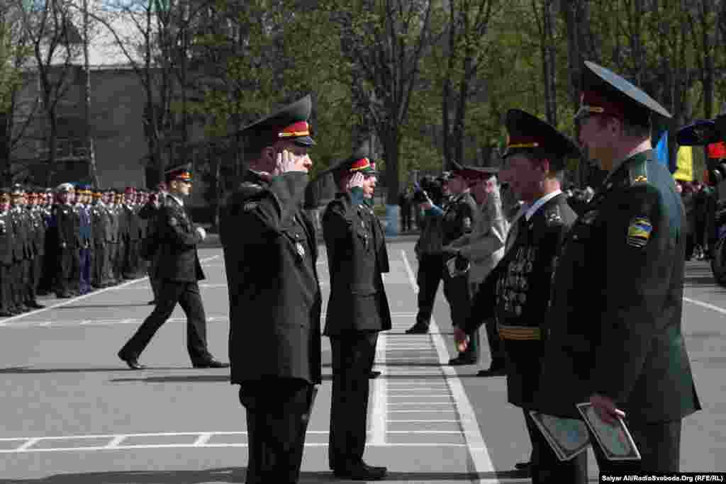 На території Національного університету оборони України пройшло урочисте відкриття меморіальних стел Героям України та загиблим військовослужбовцям під час бойових дій на сході України. Також сьогодні вручили диплом магістра 228 випускникам Національного університету оборони, серед сьогоднішніх випускників 112 є учасниками АТО.