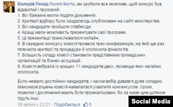 Член комісії Валерій Пекар вважає, що процедура відбору вперше була такою прозорою і зрозумілою. «Критерії відбору були заздалегідь опубліковані на сайті міністерства. Всі кандидати пройшли співбесіди, а найкращі мали можливість презентувати свої програми. Більшість складу комісії становили представники громадських організацій та бізнес-асоціацій», – написав він у Facebook.