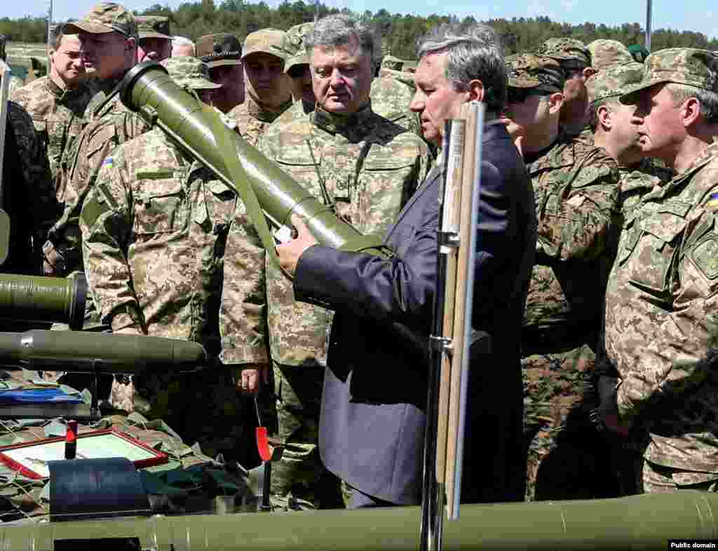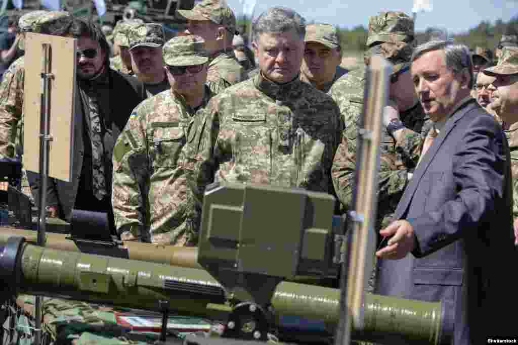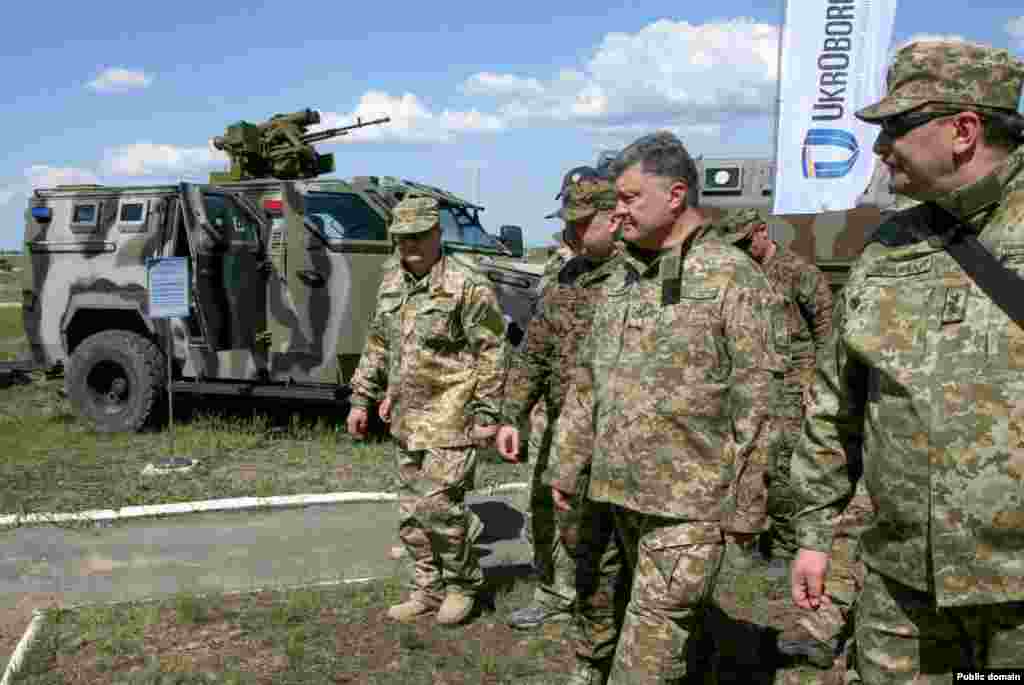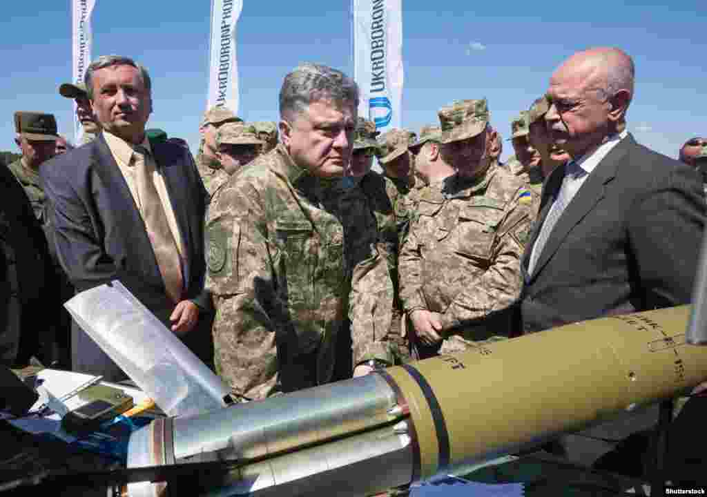 Президент України Петро Порошенко відвідав навчальний центр Сухопутних військ Збройних сил України «Десна» (Чернігівська область). Главі держави було продемонстровано високоточну зброю, протитанкові ракетні комплекси та керовані ракети. Уся бойова техніка вироблена на українських підприємствах, які входять до складу ДК «Укроборонпром».