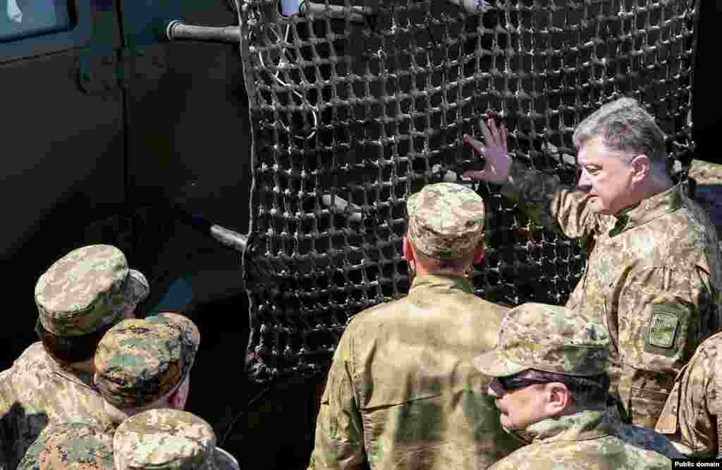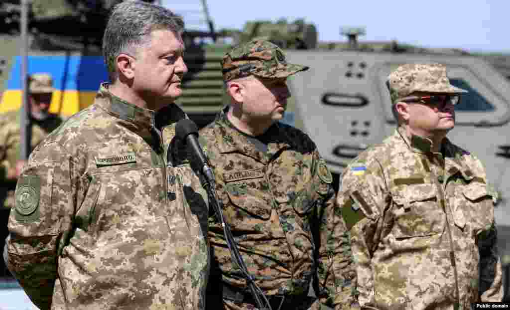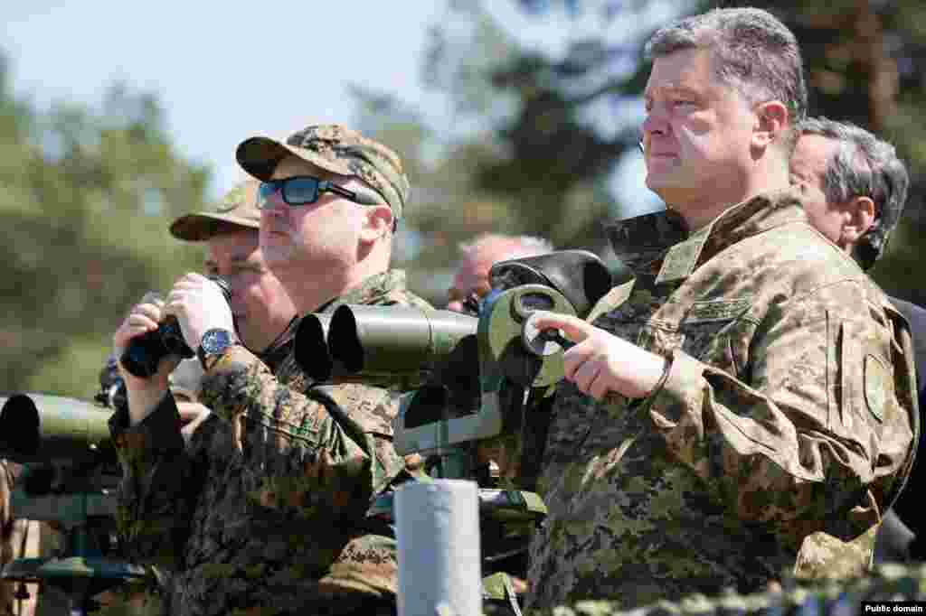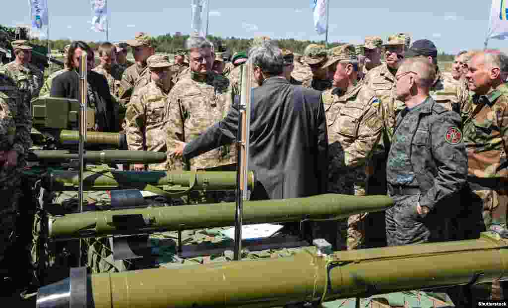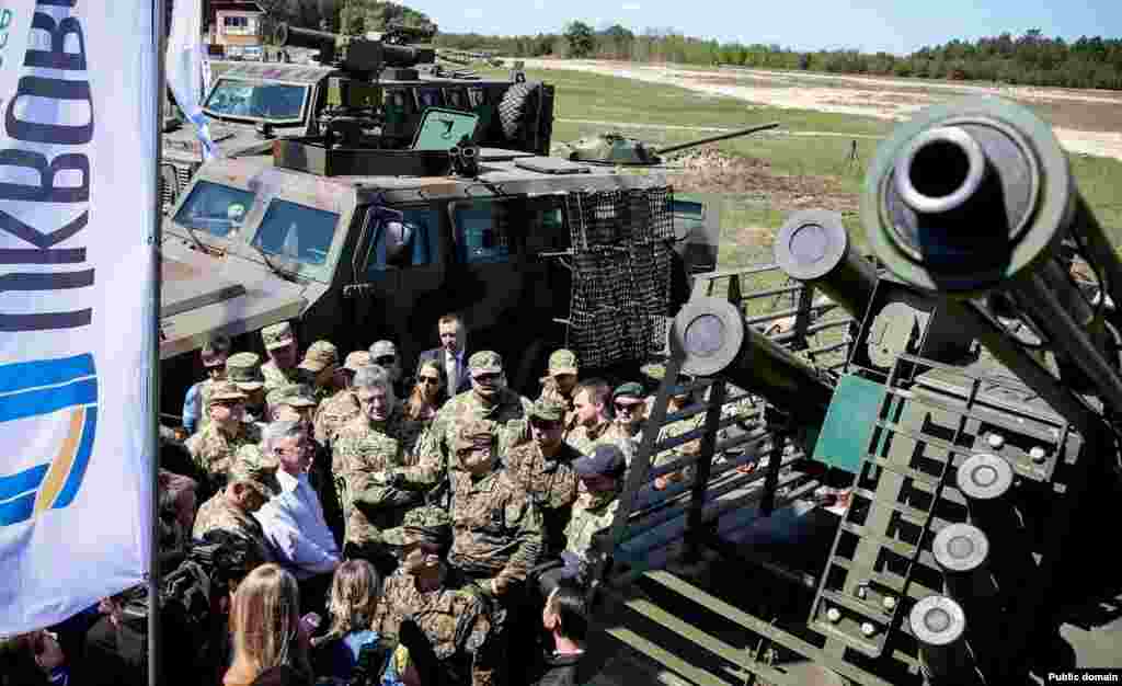 Президент України Петро Порошенко відвідав навчальний центр Сухопутних військ Збройних сил України «Десна» (Чернігівська область). Главі держави було продемонстровано високоточну зброю, протитанкові ракетні комплекси та керовані ракети. Уся бойова техніка вироблена на українських підприємствах, які входять до складу ДК «Укроборонпром».