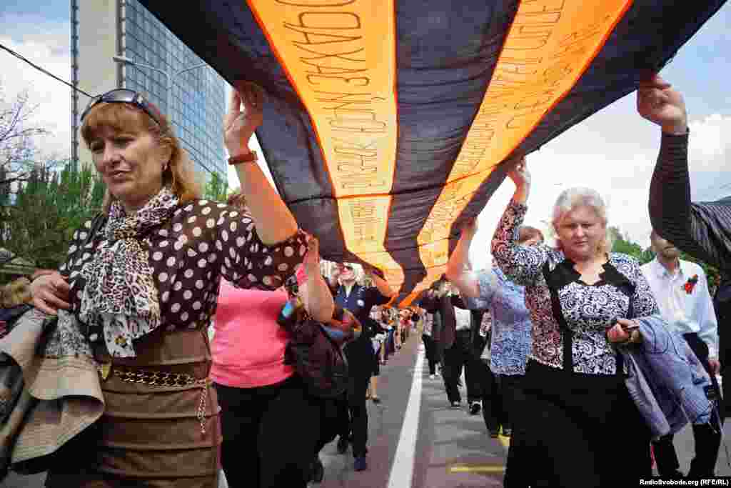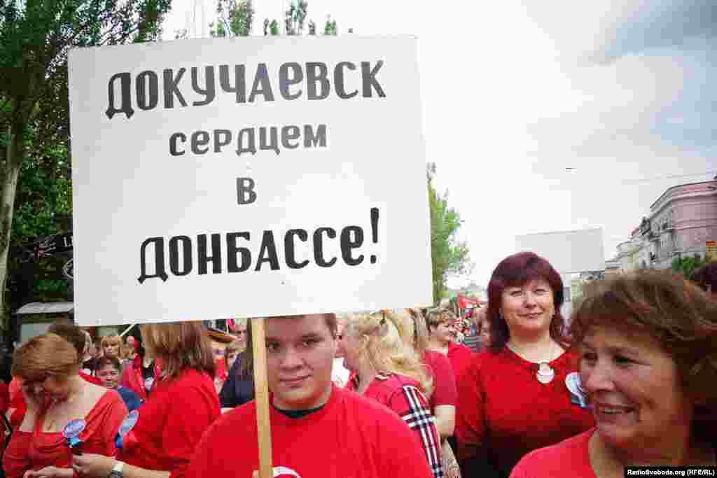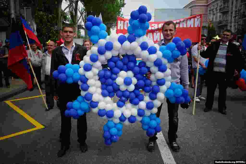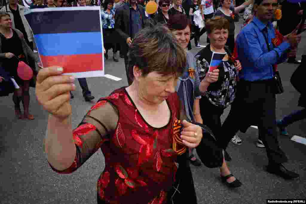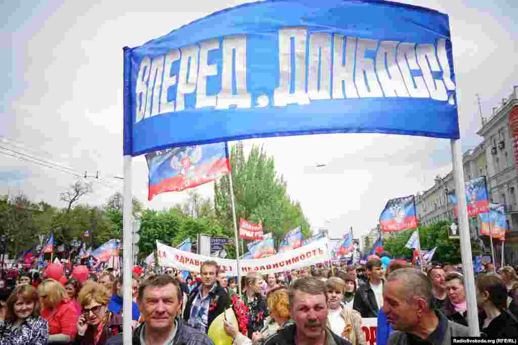 У Донецьку 11 травня провели ходу до річниці так званого «референдуму», проведеного рік тому в частині захоплених проросійськими бойовиками і російськими спецпідрозділами міст Донецької і Луганської областей. Оголошені «результати» цього «опитування», так би мовити, «оформили» контроль бойовиків угруповань «ДНР» і «ЛНР» над частиною Донбасу. Як повідомляють з окупованої території, керівництво угруповання «ДНР», що визнане в Україні терористичним, змушувало підприємства відправляти людей на нинішню акцію.