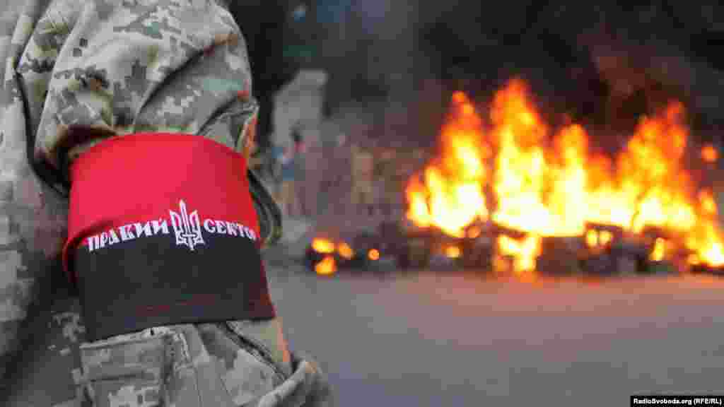 Активіст «Правого сектору» просить людей не підходити надто близько до палаючих шин