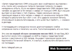 Канал Міністерства оборони Росії «Звезда» цитує частину звіту з порталу моніторингової місії, однак додав й іншу інформацію.