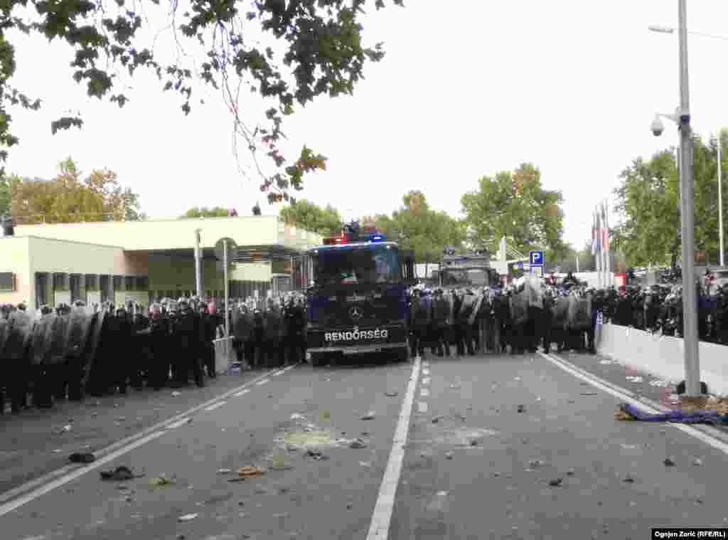 За повідомленнями, біженці, які зібралися на кордоні з боку Сербії, поводилися агресивно, кидали в угорських поліцейських каміння, пляшки та палиці