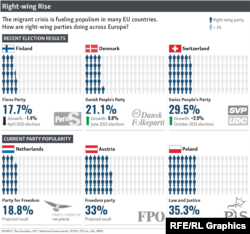 У Фінляндії євроскептична антиімміграційна Партія фінів трохи хоч і зменшила свою електоральну підтримку, але на виборах цього було достатньо, щоб вона стала другою (раніше була третьою) в національному парламенті. Водночас партії з антиіммігрантськими платформами ведуть перед в опитуваннях громадської думки в Швеції та Нідерландах.