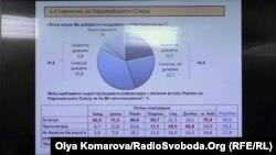 На момент проведення дослідження за вступ України до Євросоюзу висловились 54 відсотка українців. Опитування проводилось, в тому числі, і на Донбасі, сході України, де переважна більшість проголосувала проти такої ініціативи.