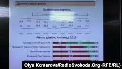 «Зараз 81% не довіряють Верховній Раді. Так само можете побачити зміни, які стосувалися Кабінету міністрів. У нас був період, коли був обраний новий уряд, Кабінет міністрів, ми мали позитивний баланс довіри, це було в 2014 році. І зараз ми бачимо, що переважна більшість населення країни не довіряє уряду – 82%. Якщо ви порівняєте з даними 2012 року, показники ще гірші, ніж в уряду Азарова», – зауважив Дмитро Дмитрук.