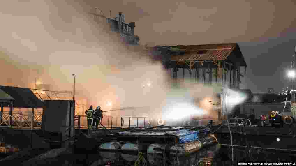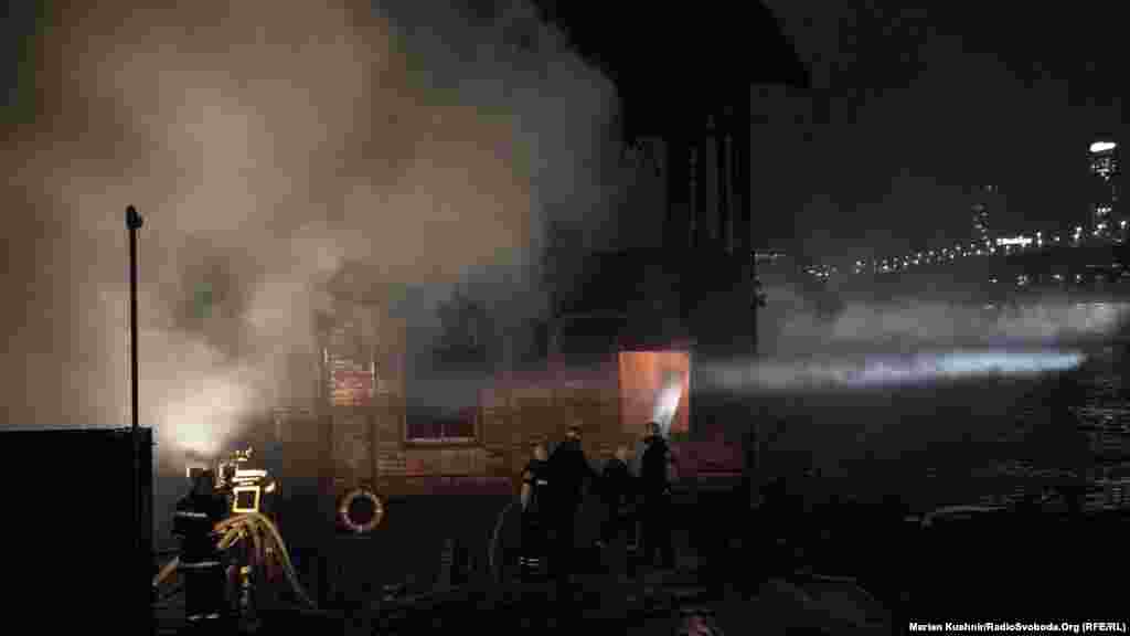 У столиці горів ресторан на воді. Як повідомили у прес-службі ДСНС у місті Києві, пожежі було присвоєно підвищений номер виклику. На місці працюють 17 одиниць спеціалізованої техніки та пожежний катер. Постраждалих, за словами голови прес-служби, немає.