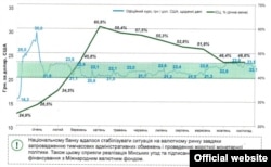 За словами очільниці НБУ, цього року Україна пережила справжній «шторм» у фінансовому секторі, наслідком якого стала девальвація гривні відносно долара, інфляція та виведення з ринку 33 банків, які виявилися неплатоспроможними або реалізували незаконні схеми. Нацбанк вдався до жорстких адміністративних заходів, і водночас зберігав політику гнучкого валютного курсу.