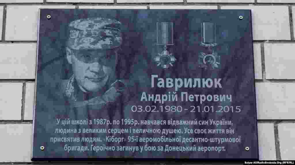 Відбулося урочисте відкриття меморіальної дошки воїну Андрію Гаврилюку, який загинув 21 січня 2015 року, захищаючи Донецький аеропорт. Меморіальна дошка розташована на стіні спеціалізованої школи № 71 Солом'янського району Києва, де навчався Андрій. Вшанувати пам'ять загиблого прийшли рідні, знайомі та друзі.