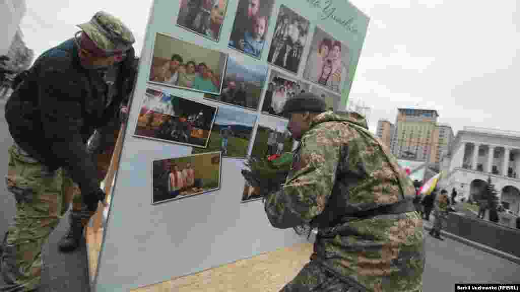 Активісти перекрили дорогу фотощитами із виставки сімейних альбомів героїв Небесної сотні. Пізніше поліція сама перекрила рух від вулиці Богдана Хмельницького до майдану Незалежності. (Фото: Сергій Нужненко)
