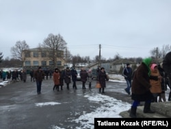 За чверть друга. Біля місцевого будинку культури збираються люди. Молоді дівчата – в куртках і без головних уборів, жінки – у хутряних шапках, бабусі – в мохерових хустках. Стоять в своєму колі, обговорюють, що сталося з Сергієм Олійником.