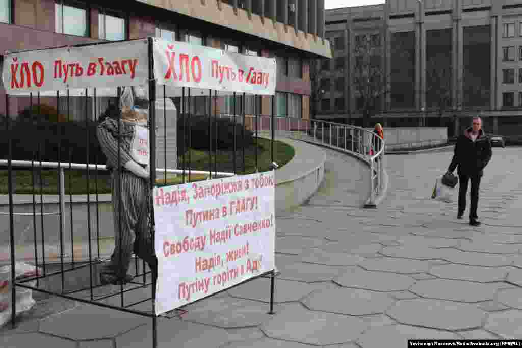 Як передає кореспондент Радіо Свобода, учасники заходу принесли з собою плакати з написами «#FreeSavchenko», «Свободу Савченко!», «Путину гореть в аду!», «Надія Запоріжжя з тобою!» та «Надія, живи!». Акція має безстроковий характер: активісти планують збиратися на мітинги, поки Надію Савченко не звільнять.