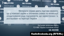 «Матеріали справи дають підстави вважати, що ці компанії залучені до злочинних схем мінімізації оподаткування низки підприємств, що зареєстровані та розташовані на території України», – мовиться у листі за підписом на той час заступника начальник відділу ГСУ МВС України, полковника міліції О. В. Козлова.