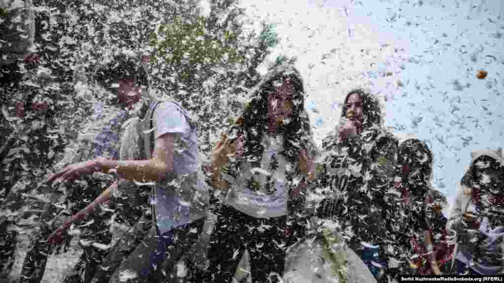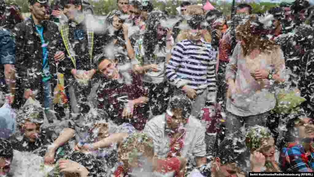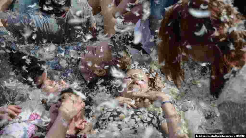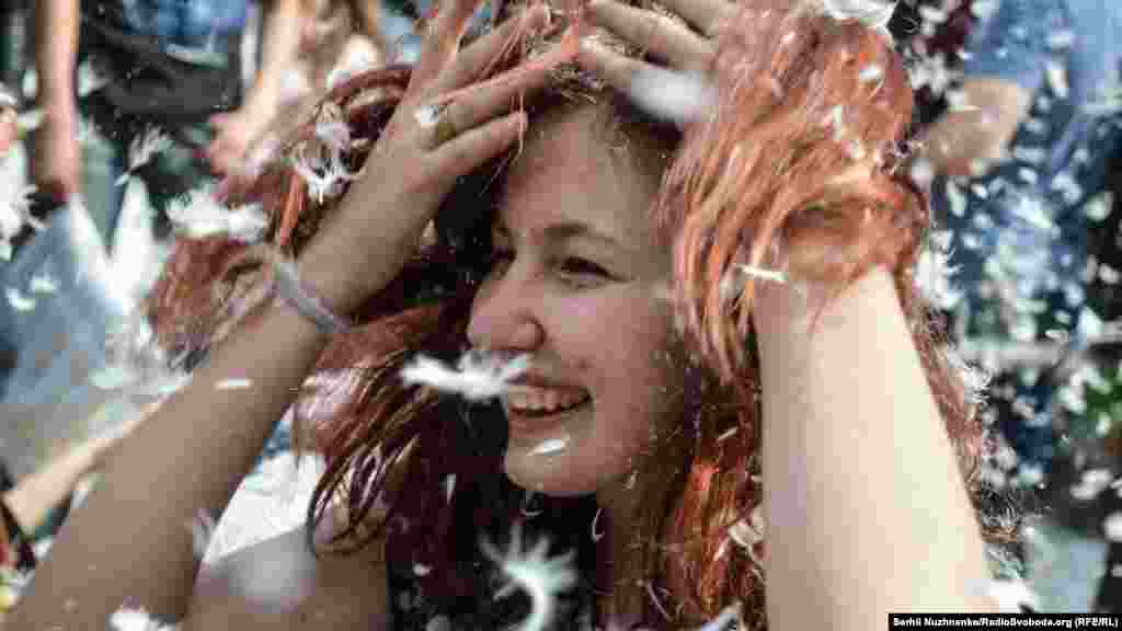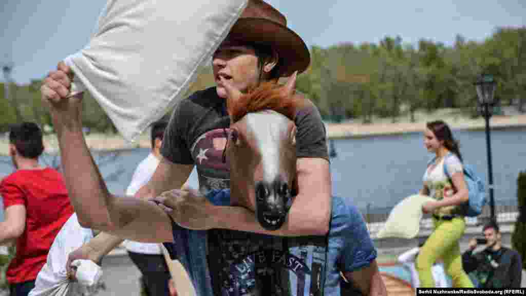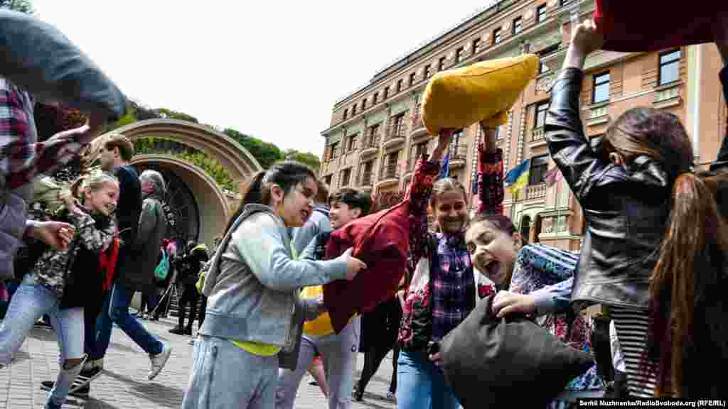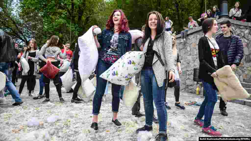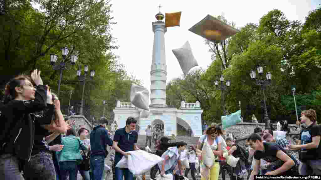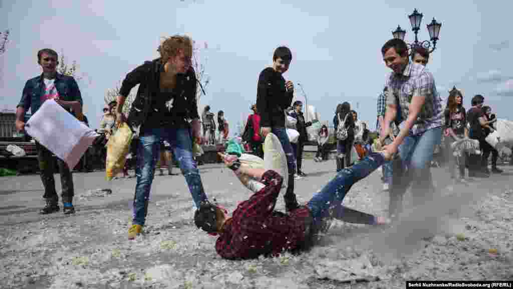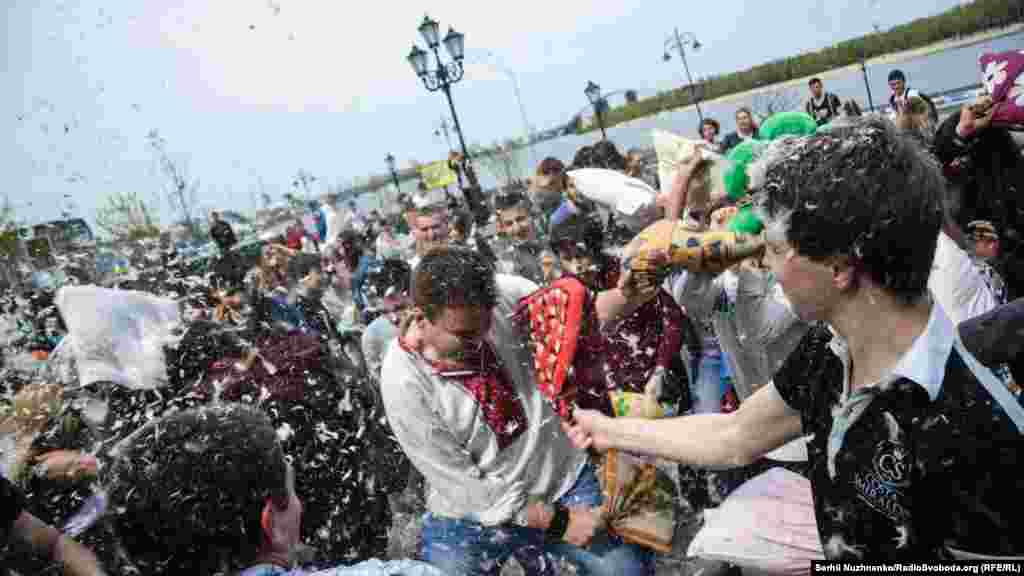 24 квітня у Києві відбувся бій подушками. Усі охочі позмагатися зібралися о 14:00 біля пам'ятника Магдебурзькому праву на Подолі. Кожен прийшов зі своєю подушкою для битви. Хлопці проти дівчат, усі на одного, купання в пір'ї та інші пустощі, але в результаті постраждали лише подушки.