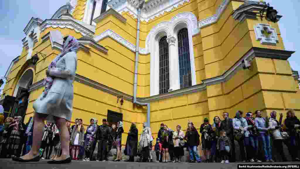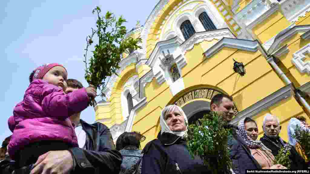 Кияни та гості столиці зібрались біля Володимирського собору, аби освятити вербу та помолитися.