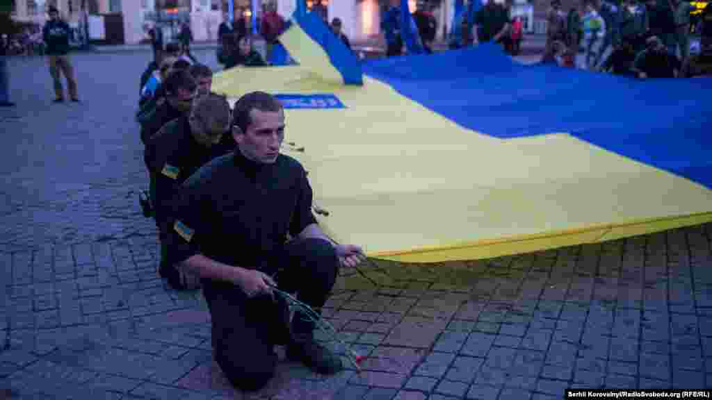 Загалом людей було менше, ніж на проросійському мітингу, що відбувався цього ж дня на Куликовому полі
