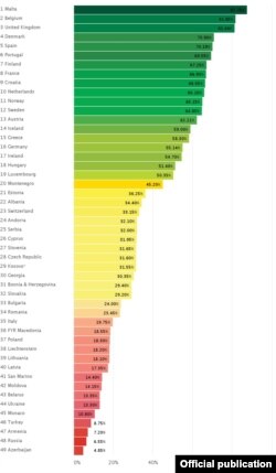 Гірше лише азербайджанським геям, чия держава найагресивніше ставиться до сексменшин – держава посіла 49-е місце в рейтингу. Найкраще права ЛГБТ-спільноти, згідно з рейтингом, дотримані на Мальті, у Бельгії та Великій Британії.