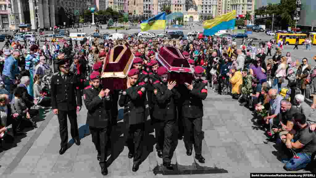 Попрощатись із загиблими військовими прийшли кількасот побратимів та киян