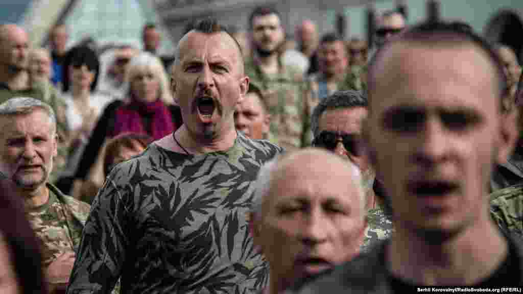 На майдані Незалежності у Києві прощалися із бійцями ДУК «Правий сектор» Робертом Маслеєм (позивний «Док») та Юрієм Гнатюком (позивний «Гуцул»), які загинули в зоні АТО 12 червня під час обстрілу шахти «Бутовка».