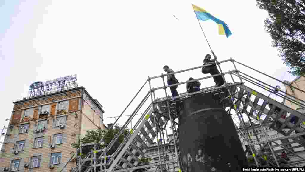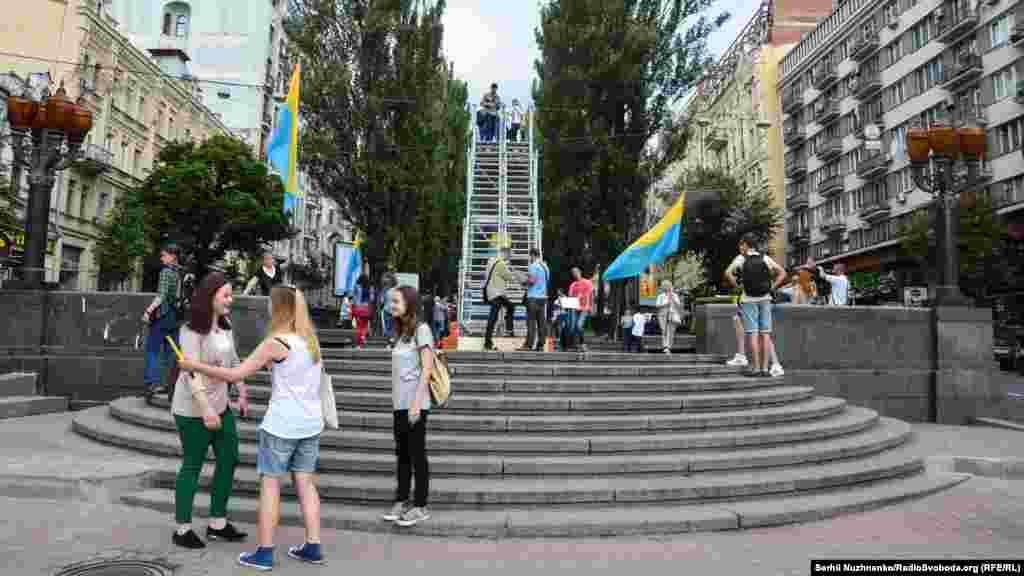 У суботу, 9 липня, в межах проекту «Суспільна угода» фонду «Ізоляція» мексиканська мисткиня Синтія Гутьєррес відкрила на місці поваленого пам’ятника Леніну в Києві тимчасову інсталяцію «Тіні, які населяють» (Inhabiting Shadows). Усі охочі зможуть побачити творіння Гутьєррес до 14 липня.