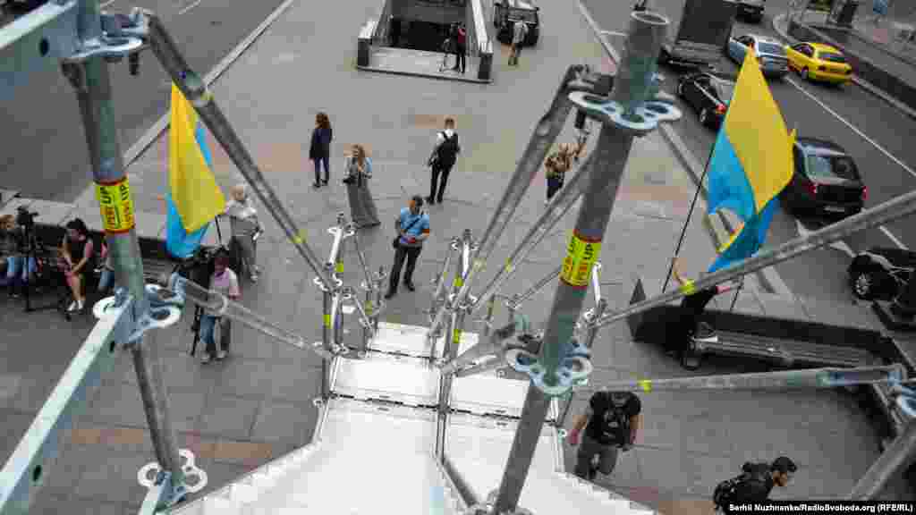 Інсталяція дозволить кожному піднятись сходами та зайняти порожній простір п’єдесталу на кілька хвилин. Проект Синтії Гутьєррес переміг у відкритому конкурсі, оголошеному фондом «Ізоляція» у квітні 2016 року.