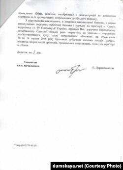 Бажання міської влади заборонити масові заходи підтримали у тому числі митрополит Одеський і Ізмаїльський Агафангел (УПЦ МП) і народний депутат Павло Унгурян. Вони фігурують у зверненні керівника управління Національної поліції в Одеській області Георгія Лорткіпанідзе, яке поширюють місцеві ЗМІ.
