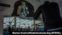 Пройти по коридору, потім – через великий спортзал із затягнутими сіткою побитими вікнами, сходами нагору – у боксерський зал. Колись під час обстрілів міста тут також розтрощило шибку, тож із початком холодів доведеться шукати інше приміщення для тренувань. У залі є ринг, кілька груш і вже трохи злущений мурал із Кличком на півстіни – поряд із плакатом, із якого, імовірно, портрет і був колись перемальований, та афішами чемпіонатів різних років.