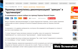 Наприклад, російський телеканал «РЕН-ТВ» вийшов із заголовком: «Українці обурилися декомунізацією «ерекції» в «прутненапряг». Про такі буцімто нововведення в українській мові російським ЗМІ повідомив екс-прем’єр України Микола Азаров. Він також дав коментар російському телеканалові «Мир», де цій темі присвятили цілий сюжет.