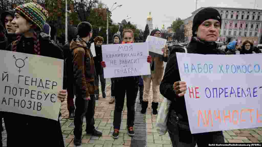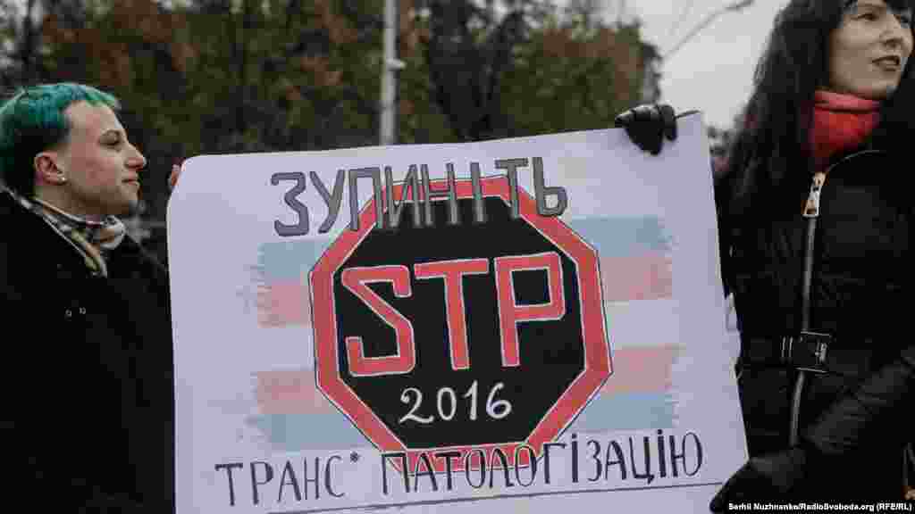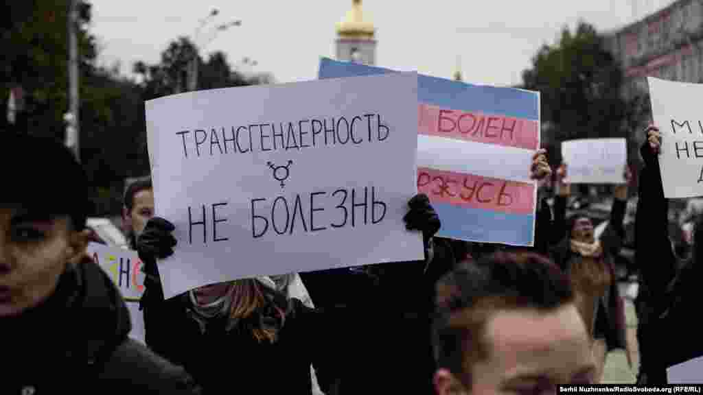 22 жовтня у Києві відбулася акція до Міжнародного дня дій, спрямованих на депатологізацію трансгендерності. Як передає кореспондент Радіо Свобода, близько 50 учасників пройшли маршем від Софійської до Михайлівської площі. Вони тримали в руках плакати з написами: «Моє тіло – моє діло», «Трансгендерність – не хвороба», «Зупиніть транспатологію» тощо.
