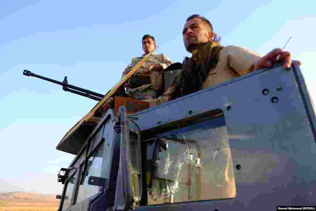 Фотографії Махмуда демонструють, як вояки «пешмерги» здійснюють ракетний обстріл з міста Башіка території, яку контролюють ісламісти.