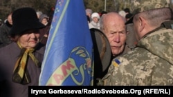 Ветераны Второй мировой войны торжественно передали военным флаг города Мариуполя. Затем участники митинга почтили память погибших минутой молчания и вместе с военными возложили цветы к подножию памятника воинам-освободителям.