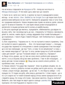 Кілька днів поспіль українська блогосфера активно обговорює явище еміграції: хто, чому й куди виїжджає з України. Приводом для бурхливих дискусій стала не лібералізація візового режиму чи оприлюднення останніх статистичних даних чи опитувань. Хвилю запустила публікація у «Фейсбуці» українського медіаменеджера Артура Оруджалієва.