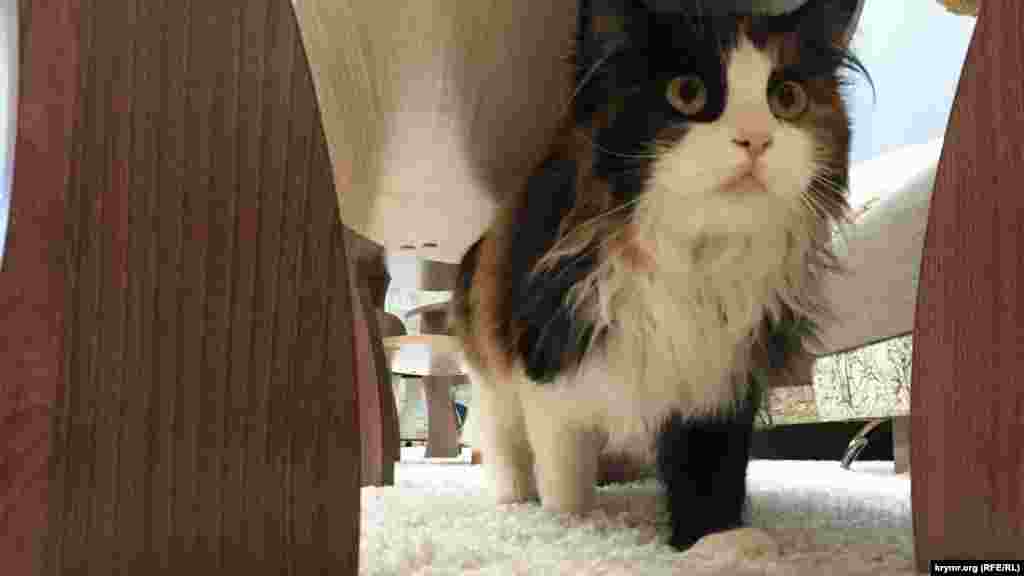 У анексованому Сімферополі відкрили перше котокафе в місті. Принцип закладу: люди оплачують тільки час перебування в кафе. Вартість: 250-300 рублів (113-136 гривень) за годину. Зараз у закладі постійно перебуває сім-вісім котів.