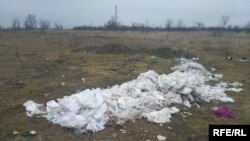 Приблизно в 20 метрах від одного з житлових корпусів лежить купа використаних підгузків. За словами Георгія Блощиці, вони належали хворим на тиф підопічним, бо під час минулого візиту він бачив їх саме біля нього, а після від’їзду підопічні подзвонили йому і розповіли, що їх просто змусили перевезти в інше місце. Директор інтернату цю інформацію спростовує. Каже, «тифозні» підгузки спалені, хоча показати місце утилізації не зміг. А підгузки, які ми побачили при новому візиті – підгузки здорових людей. Не утилізовані вони тому, що через погодні умови їх не встигли донести до ями та закопати.
