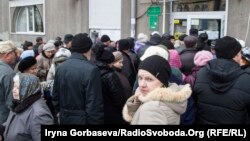 Переселенец из Донецка, пенсионер Владимир, уже вторые сутки стоит в очереди и надеется, что за сегодняшний день ему удастся решить все проблемы. Кабинет министров своим постановлением от 28 декабря 2016 года обязал переселенцев пройти идентификацию в «Ощадбанке» до 3 апреля текущего года. Граждане, не получившие электронное пенсионное удостоверение, обязаны проходить эту процедуру каждые 3 месяца со дня открытия счёта. После его открытия – раз в полгода. В отделениях банка в Луганской и Донецкой областях – огромные очереди. Мариуполь не стал исключением.