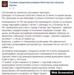 Про можливість провокацій російських спецслужб попередило Головне управління розвідки (ГУР) Міністерства оборони України. За даними розвідки, під час акцій в Одесі 2 і 9 травня очікується «провокування протестуючими сутичок з патріотично налаштованими активістами і співробітниками правоохоронних органів».