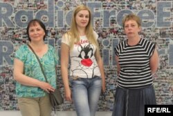 Волонтери «Донбас SOS» Олена Голодна, Віолета Артемчук і Лариса Бірюкова у студії Радіо Свобода в Празі