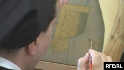 «Щоб зробити один колір, під нього потрібно поставити ще один, – пояснює Тарас Марків. – Воно все одне з одним гарний взаємозв’язок має. Наприклад, синій – то є поєднання чорного і білого. Щоб поставити його, треба під нього нанести жовтий, чорний і білий».
