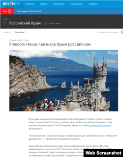 Російські ЗМІ вийшли із заголовками: «Freedom House у своїй доповіді визнала Крим російським», «Україна обурюється: Крим на картах Freedom House – російський» та подібними.