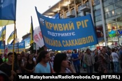 Українські пісні з динаміків, «демократичний» формат зустрічі – ніякої сцени, лише мікрофон і дві колонки, кілька сотень учасників, тиснява, безпрецедентна кількість поліцейських. Так відбувалась зустріч лідера партії «Рух нових сил» Міхеїла Саакашвілі з жителями Дніпра цього вечора – на Європейській площі, уже в сутінках.