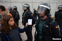 Поліцейські вилучають урни з бюлетенями для голосування і блокують будівлі, де розташовані виборчі дільниці. Загони іспанських сил правопорядку, відряджені в Каталонію, напередодні референдуму зуміли зайняти частину з 2315 виборчих дільниць, розташованих в місцевих школах, щоб не допустити туди охочих проголосувати. За даними каталонської влади, три чверті дільниць вдалося відкрити.