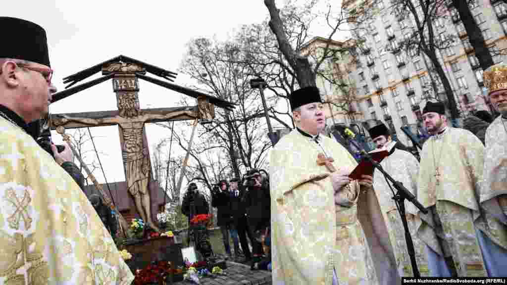 Кияни, очевидці тих подій та родичі полеглих несуть квіти та лампадки до Алеї Героїв Небесної сотні. Біля Хреста пам'яті Героїв Небесної сотні відбувся спільний поминальний молебень, присутні вшанували пам'ять загиблих під час подій 2014-го хвилиною мовчання.