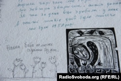 Вона також записала бабусині улюблені фрази, на кшталт: «Баба-жаба,1, 2, 3». Власне, цими словами Євгенія Шлапак вітається з онучкою на порозі своєї хати у селі Тамановичі, що на Львівщині. До висловлювань бабусі мисткиня дописує власні думки і творить листівки, а ще малює картини, дерев’яні фігурки, лінорити.