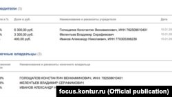 Цікаво, що виписка з російського Єдиного державного реєстру юридичних осіб, отримана за допомогою сервісу «Контур-Фокус», свідчить про те, що саме Іванов і Голощапов були співвласниками «АльянсІнвесту» в 2004 році. Крім них, засновником фірми тут також зазначений Володимир Серафимович Мелентьєв (нижче – фрагмент виписки, завантажити її повністю можна за цим посиланням).