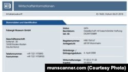 Виписка з німецького комерційного реєстру, з якої випливає, що Сергій Автоношкін є зараз єдиним власником музею в Баден-Бадені: